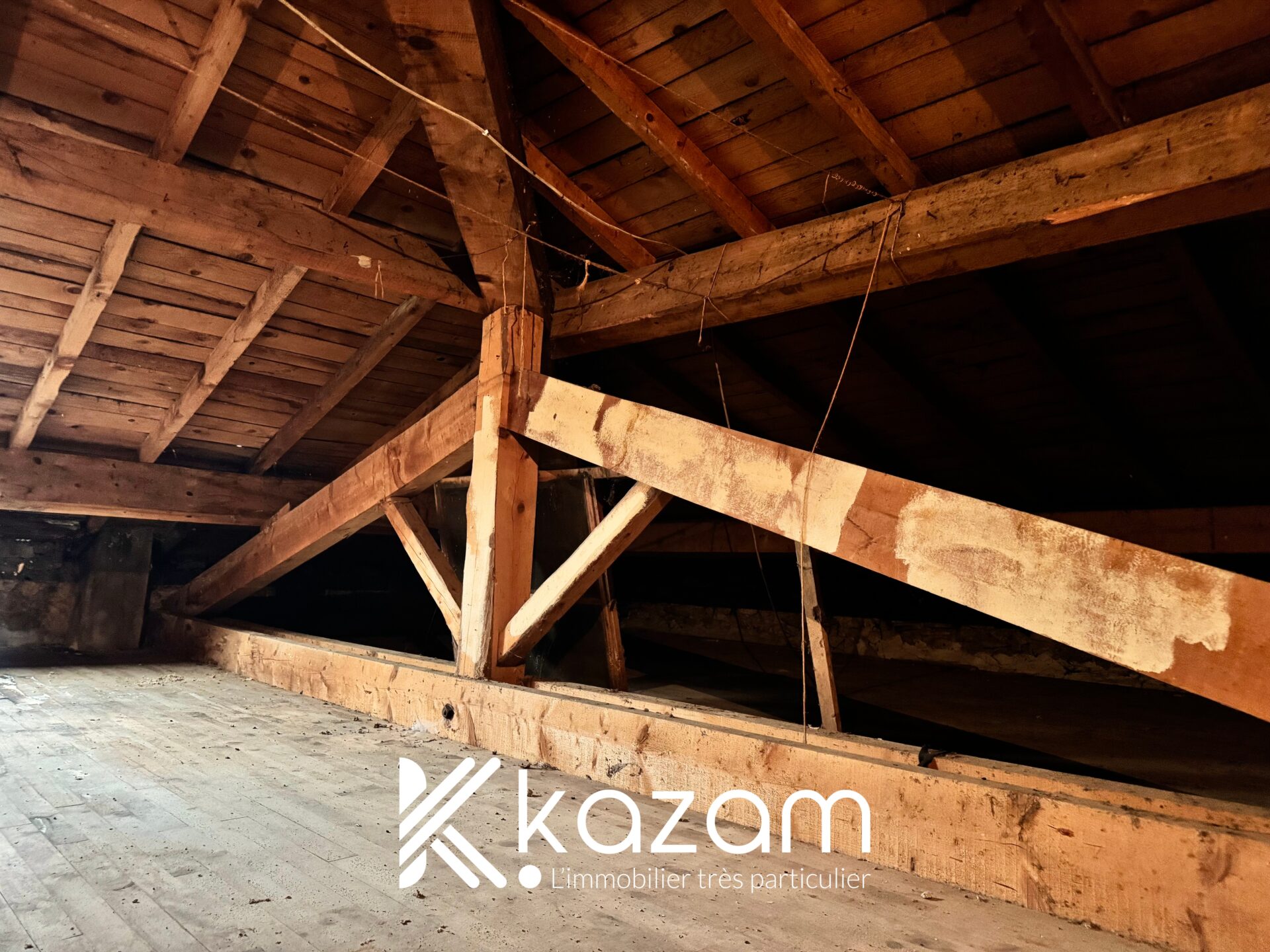 - Combles (69m²) : belle charpente traditionnelle et hauteur sous-plafond intéressante.